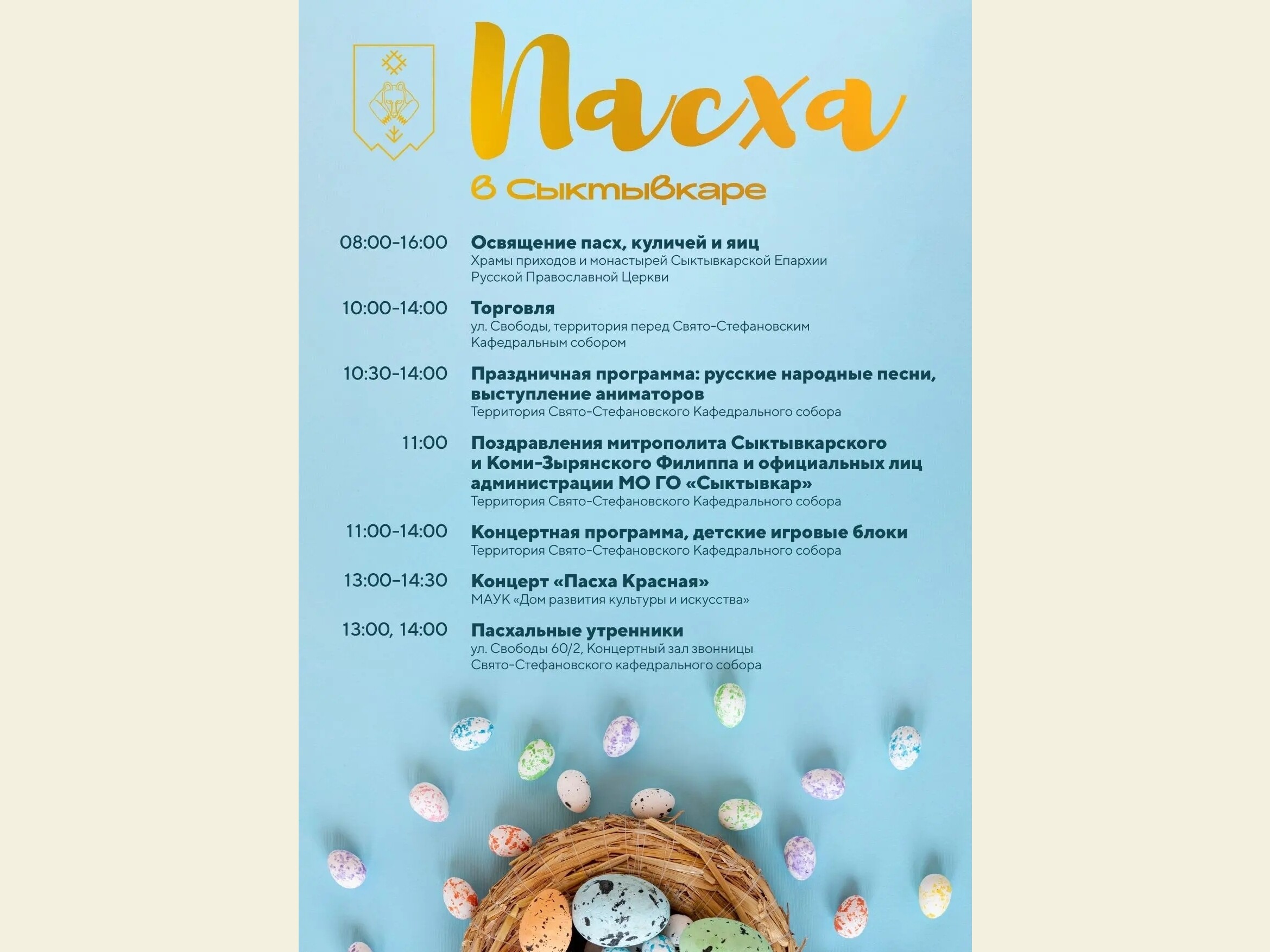 12 апреля 2026 года, в сам день светлого праздника Пасхи, в 12:00 в Театре оперы и балета Республики Коми состоится праздничный концерт, посвящённый Воскресению Христову.