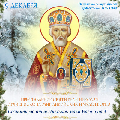 18:37 19 декабря — Преставление святителя Николая, архиепископа Мир Ликийских и чудотворца | |
