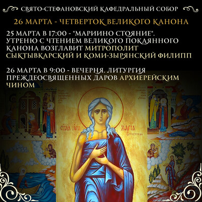 Что это Мариино стояние – особое богослужение, совершаемое на пятой седмице Великого поста. По византийской традиции служба четверга проходит в среду вечером (в 2026 году – 25 марта). Это одна из самых продолжительных служб церковного года, на которой верующие стараются побывать все. Что происходит на службе Служба полна глубокого покаяния. На ней полностью читается Великий покаянный канон Андрея Критского (более 250 тропарей) и житие преподобной Марии Египетской. Канон на Мариином стоянии читается целиком, сохраняя древнюю практику. Почему читается житие Марии Египетской Житие показывает пример величайшего покаяния: человек, бывший на дне грехопадения, силой Божией достиг святости. Соединение канона и жития раскрывает главный смысл службы: человек может измениться независимо от того, с какой точки он начинает. Как вести себя на службе Специальной подготовки не требуется. Рекомендуется следить за текстом канона (по книге или распечатке), при необходимости можно молиться своими словами или Иисусовой молитвой. При физической сложности допустимо присесть. Поклоны совершаются по возможности. Главный смысл Служба учит покаянию, вере и надежде на Бога, показывая, что путь к святости возможен для каждого, кто начинает этот труд. Почему нам постоянно надо каяться Покаяние — не единичное действие, а образ жизни христианина. Смысл его не в самоуничижении, а в перемене ума (греч. метанойя): постоянном усилии приближаться к Богу, замечая в себе то, что удаляет от Него. Без регулярного духовного «осмотра» грех незаметно укореняется, притупляя совесть. Каяться постоянно — значит не давать страстям завладеть душой. Как воздух нужен телу каждое мгновение, так покаяние нужно душе для сохранения духовной жизни. Мариино стояние в середине Великого поста напоминает: путь к святости — не однократный рывок, а непрерывный труд, в котором Бог ждет возвращения человека на каждом этапе его пути.