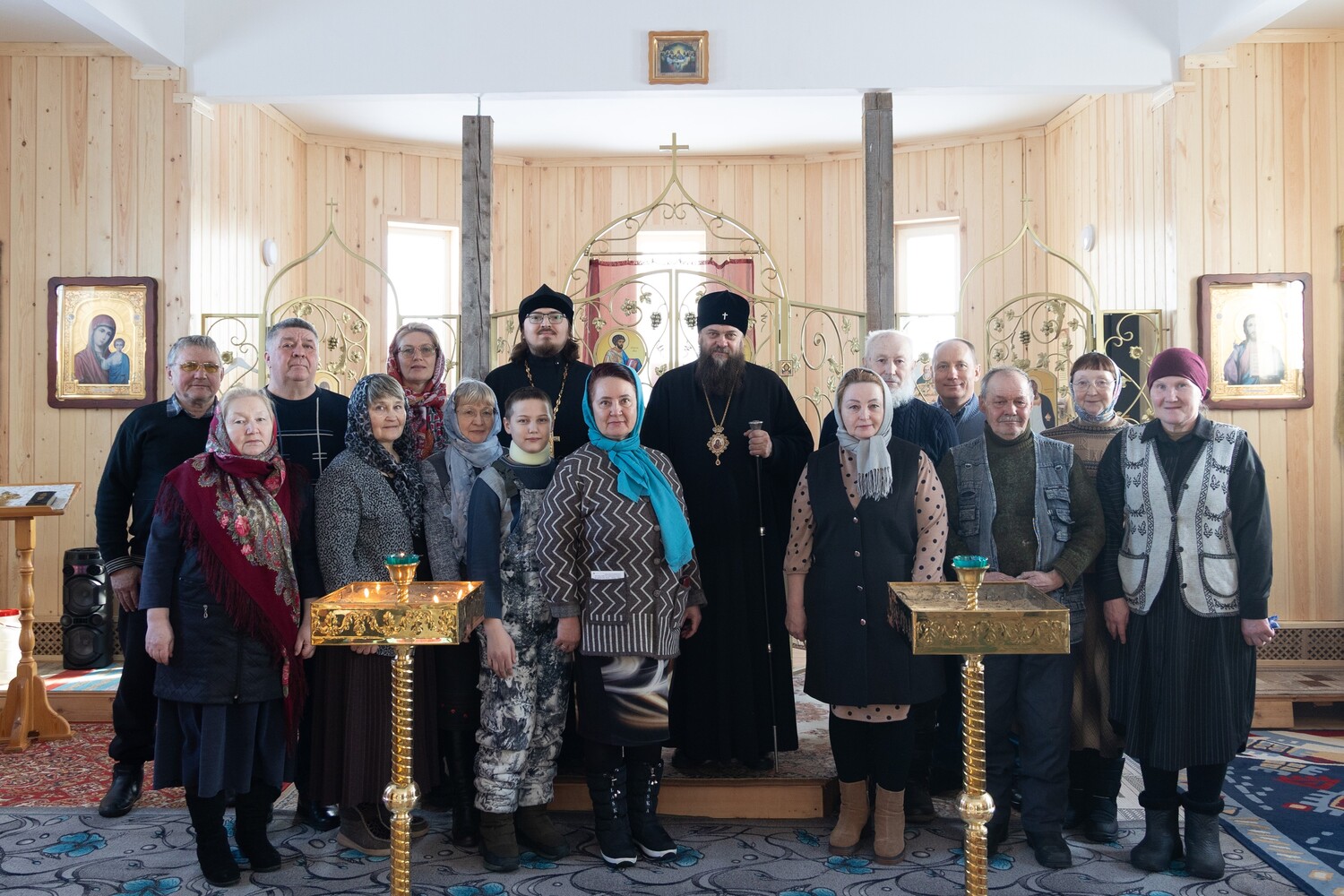 Высокопреосвященнейшего владыку у входа в храм встретил настоятель, сотрудник Сыктывкарского епархиального управления иеромонах Стефан (Варфоломеев) и помощница старосты Наталья Мартынова. По прибытии владыка осмотрел храм, благословил прихожан, раздал всем иконки Пресвятой Богородицы Казанской и обратился к собравшимся с проповедью на тему великопостного времени. Затем состоялась небольшая трапеза и знакомство архипастыря с приходом. В этот день на встрече также присутствовали глава сельского поселения «Нювчим» Валентина Ивановна Тумпакова и депутат Совета сельского поселения «Нювчим» Нина Вениаминовна Лыфарь. В завершение встречи настоятель поблагодарил владыку за визит и преподнес в дар сувенирные часы с изображением храма. Местные жители, в свою очередь, угостили высокого гостя домашними заготовками, которые пришлись как нельзя кстати в постные дни. Владыка Филипп сердечно поблагодарил всех собравшихся за теплую встречу, а также дал свои архипастырские благословения и рекомендации по вопросам дальнейшего устройства и улучшения работы прихода. Напомним, что отец Стефан несет послушание настоятеля первый год. За это время с помощью прихожан и благотворителей в храме была проведена внутренняя отделочная работа. Планов по благоукрашению церкви очень много, и приход надеется выполнить их в ближайшее время. Особая благодарность в этот день — всем прихожанам, которые, несмотря на будний день, нашли время прийти в храм, поддержать настоятеля и лично познакомиться с нашим новым правящим архиереем.