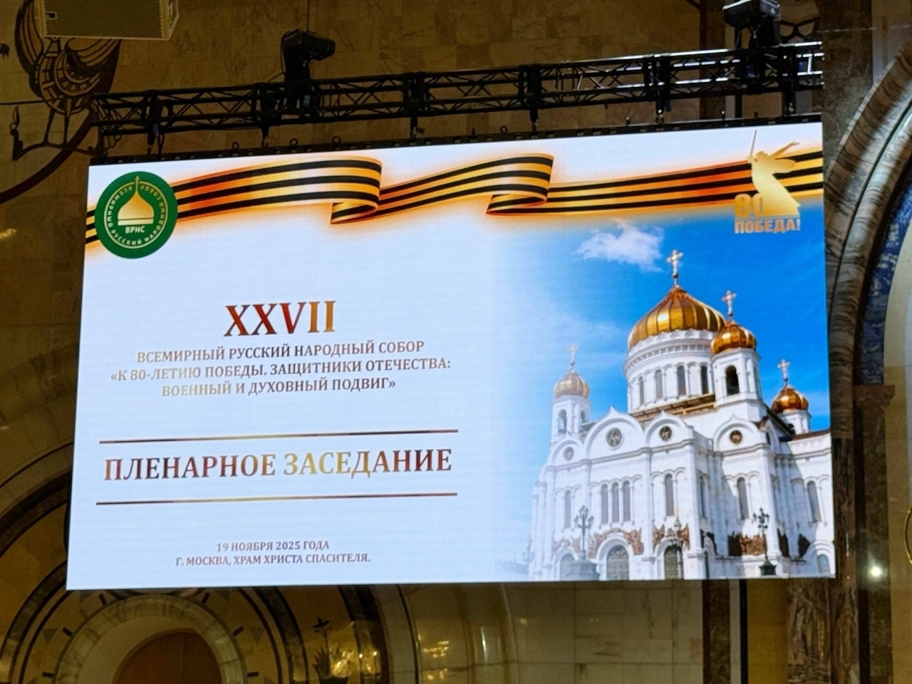 В президиуме Собора также присутствовали заместители главы ВРНС: управляющий делами Московской Патриархии митрополит Воскресенский Григорий; сопредседатель регионального отделения ВРНС в Московской области, ректор Российского православного университета святого Иоанна Богослова А.В. Щипков; член Общественной палаты Российской Федерации С.Ю. Рудов; председатель Наблюдательного совета Общероссийского общественного движения «Россия Православная» М.М. Иванов. В работе Собора приняли участие иерархи, священники и монашествующие Русской Православной Церкви, представители органов государственной власти, члены Совета Федерации и депутаты Государственной Думы, высшее духовенство традиционных религий России, деятели науки, образования и культуры. Прямая трансляция заседания велась на телеканалах «Союз» и «Спас», а также на официальном портале Русской Православной Церкви «Патриархия.ru». После объявления Собора открытым Святейшим Патриархом Кириллом прозвучал гимн Российской Федерации, после чего Предстоятель Русской Православной Церкви выступил с основным докладом. «Желая победы нашей армии, мы, безусловно, молимся о скорейшем прекращении войны на Украине, переживая за судьбы наших братьев и сестер по обе стороны фронта. И для нас совершенно очевидно: чтобы не допустить нового столкновения братских народов и чтобы исключить подобные трагедии в дальнейшем по всему миру, необходимо навсегда лишить нацизм его идейной и правовой почвы. Это было бы достойным венцом того подвига, который совершили наши предки 80 лет назад», — отметил Святейший Патриарх Кирилл. На заседании с приветствиями выступили и огласили обращения руководителей государства: первый заместитель руководителя Администрации Президента России С.В. Кириенко, заместитель председателя Правительства РФ Д.Н. Чернышенко, первый заместитель председателя Совета Федерации ФС РФ А.В. Яцкин, заместитель председателя Государственной Думы П.О. Толстой. Также перед участниками выступили Генеральный прокурор Российской Федерации А.В. Гуцан и другие официальные лица. XXVII Всемирный русский народный собор стал значимым событием в общественной и духовной жизни страны. Он продемонстрировал единство Церкви, государства и общества в осмыслении ключевых вопросов исторической памяти, защиты традиционных ценностей и отечественных духовных идеалов. Обращение к 80-летию Великой Победы и теме защитника Отечества подчеркивает непрерывную связь поколений и важность сохранения правды о героическом прошлом России для ее будущего. В работе Собора от Сыктывкарской митрополии принял участие митрополит Сыктывкарский и Коми-Зырянский Филипп. Делегацию от светской власти Республики Коми возглавил Глава региона Ростислав Эрнстович Гольдштейн. По итогам заседания было единогласно принято Соборное слово, а Святейший Патриарх Кирилл обратился к участникам с заключительным словом и объявил Собор закрытым. В завершение форума от лица всех присутствующих М.М. Иванов поздравил Святейшего Патриарха с наступающим днем рождения.