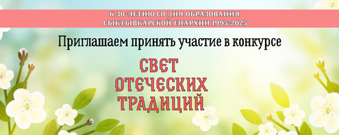 На конкурс «Свет отеческих традиций» в 2025 году принимают не только исследовательские работы и сочинения, но и рассказы и стихи. Основными темами остаются православные традиции, святыни России, великие подвижники Православия. Особо будут отмечены работы, посвященные Коми святым, ведь в этом году Сыктывкарская епархия отмечает свое 30-летие. Также в год 80-летия Великой Победы ждут и произведения, посвящённые подвигу защитников Отечества в Великой Отечественной войне и на тему «Россия – Родина моя». Конкурс будет проходить в четырёх возрастных группах: 7-10 лет; 11-13 лет; 14-16 лет; 17-18 лет. В состав жюри будут входить представители Союза журналистов России, Управления образования Ухты и священнослужители Русской Православной Церкви. Участники, приславшие работы на конкурс, и их представители тем самым выражают согласие на обработку персональных данных, а также на публикацию ФИО и фото участников при объявлении итогов в СМИ и соцсетях. Конкурсные работы принимаются по 18 апреля 2025 года (включительно) по электронной почте: ludnikovnn@mail.ru. Все участники будут награждены дипломами, победителей ожидают призы. Контактный телефон: 8912-948-41-73. Требования к конкурсантам - Исследовательская работа (для учащихся старших классов и студентов) должна быть не меньше 15 тыс. символов с пробелами и не превышать 30 тыс. символов с пробелами, список использованных источников обязателен; - Сочинение - до 2000 знаков с пробелами; - Рассказ - до 2000 знаков с пробелами; - Стихи - от 8 до 32 зарифмованных стихотворных строк. Все работы должен предварять титульный лист с названием, именем и фамилией автора, его телефоном (или родителей), контактными данными руководителя (учителя) наименованием, адресом образовательного учреждения. Подробнее в Положении на сайте: http://www.колоколсевера.рф/конкурс-свет-отеческих-традиций-ра#more-20437