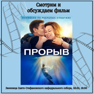 Дорогие друзья! Приглашаем вас на просмотр и обсуждение фильма «Прорыв»! Когда? 28 февраля в 18:00 Этот фильм основан на реальных событиях и рассказывает о силе молитвы, которая творит настоящие чудеса. В преддверии Великого поста это особенно актуально! Вас ждет вдохновляющий сюжет, глубокий смысл и потрясающая песня, которую вы наверняка уже слышали, но даже не догадывались, что она посвящена Святому Духу! В первую очередь ждем молодежь, но на просмотр фильма может прийти любой желающий! После просмотра фильма приглашаем вас в уютную трапезную! Организатор: Молодежный отдел Сыктывкарской епархии имени святого великомученика Евстафия Плакиды.