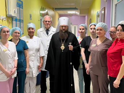 Визит начался с совместной молитвы в больничной молитвенной комнате, где Владыка Филипп в сослужении иерея Стефана Козака, штатного клирика Троицкого храма Сыктывкара и настоятеля храма Успения Пресвятой Богородицы, духовно окормляющего данное учреждение, совершил краткий молебен о здравии всех болящих. По его завершении правящий архиерей Сыктывкарской епархии пожелал Божией помощи врачам и медицинскому персоналу в их нелегком труде, а пациентам — скорейшего выздоровления и душевного мира. В дар молитвенной комнате одна из сотрудниц больницы, начальник отдела медико-социальной помощи Ольга Валерьевна Рылина, передала хранившуюся в ее семье икону апостола Матфея. Этот образ, преемственно передававшийся из поколения в поколение, был сохранен в годы активного разрушения, осквернения и расхищения храмов в прошлом веке. Затем Владыка Филипп в сопровождении сестер милосердия Сыктывкарской митрополии во имя святого Стефана Пермского, которые недавно возобновили свою деятельность по благословению Владыки и в этот день присоединились к посещению детской республиканской больницы, посетил отделения травматологии и неврологии. Митрополит Филипп пообщался с юными пациентами, находящимися на лечении, утешил их и благословил каждого, вручив в дар икону небесного покровителя земли Коми — святителя Стефана Пермского. Важной частью визита стала личная беседа митрополита Филиппа с главным врачом Игорем Генриховичем Кустышевым. В ходе встречи стороны обсудили перспективы развития сотрудничества между епархией и лечебным учреждением. Было предложено возродить при больнице постоянное присутствие сестричества милосердия. Сестры, по замыслу, смогут помогать священнику в духовном окормлении пациентов: регулярно обходить палаты, разъяснять основы веры и готовить желающих к принятию церковных Таинств. Руководство больницы тепло поблагодарило Владыку за визит и внимание. В знак признательности Игорь Генрихович подарил митрополиту Филиппу книгу, изданную к 65-летнему юбилею медучреждения. В свою очередь, глава Сыктывкарской митрополии оставил памятную запись с добрыми пожеланиями в Книге почётных гостей и подарил учреждению икону Божией Матери «Достойно есть». Этот визит стал важным шагом в укреплении взаимодействия Церкви и здравоохранения, неся детям и их родителям слово утешения и надежды, а медицинскому сообществу — молитвенную и деятельную поддержку.