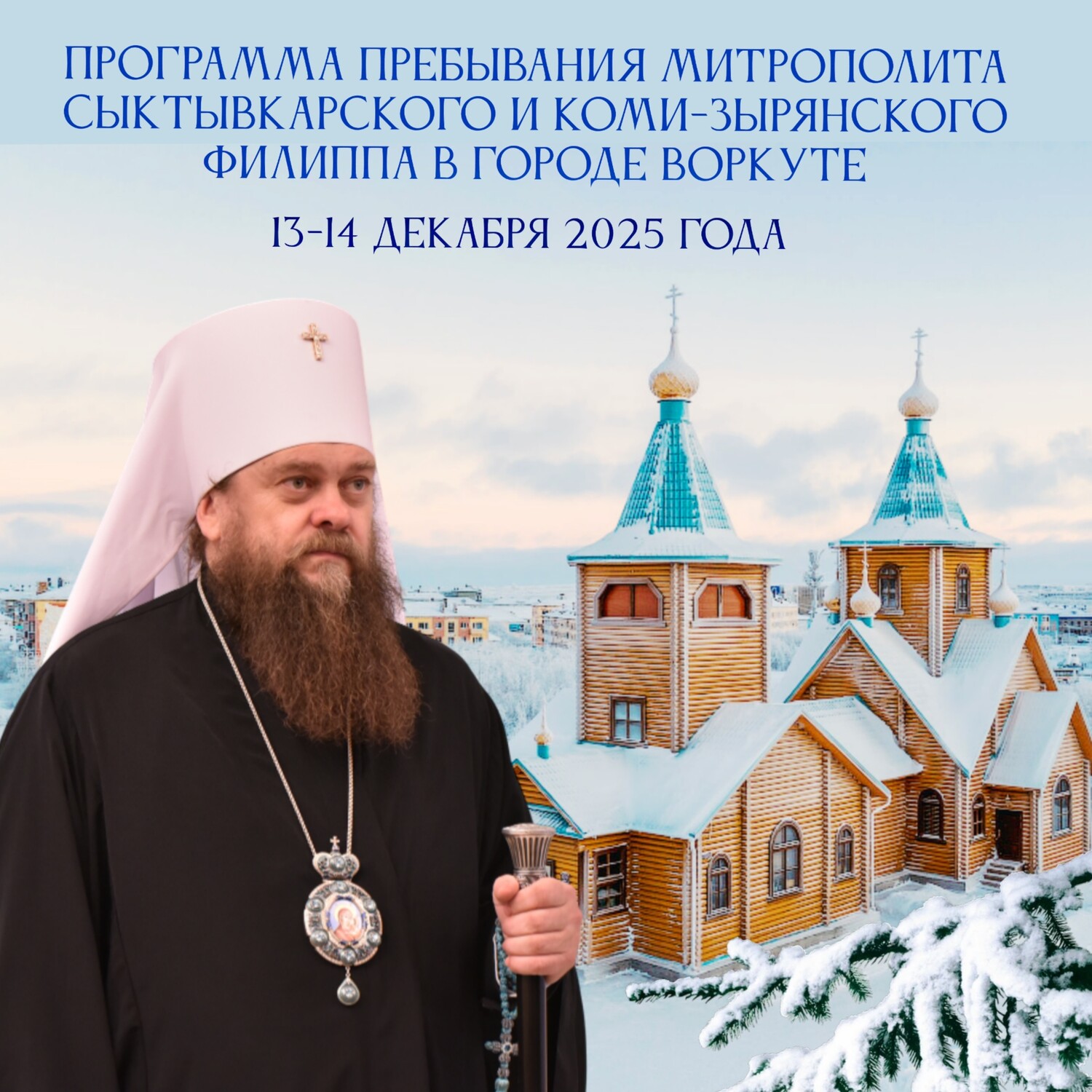 Визит начнется с встречи митрополита Филиппа с правящим архиереем Воркутинской епархии, Высокопреосвященнейшим МАРКОМ, архиепископом Воркутинским и Усинским, а также с представителями администрации города Воркуты. Программа пребывания Высокопреосвященнейшего митрополита Филиппа в Воркуте включает: 13 декабря (суббота):