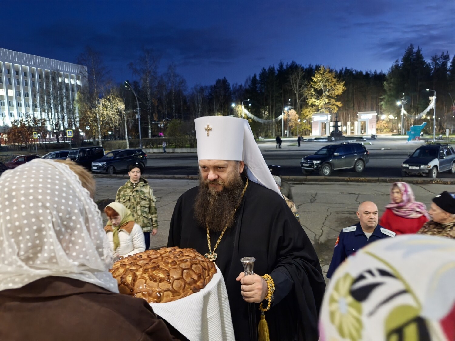 Торжественное начало: Всенощное бдение в Свято-Стефановском храме Визит Высокопреосвященнейшего Владыки начался вечером 18 октября с Всенощного бдения в Свято-Стефановском храме. По русскому обычаю, митрополита Филиппа встретили с караваем, что подчеркнуло особую торжественность момента. Богослужение прошло в сослужении духовенства округа, включая настоятеля храма игумена Силуана (Александрова) и благочинного Ухтинского центрального церковного округа иерея Романа Ситника. История этого храма уникальна: здание, построенное в 1951 году как Дом Культуры Нефтяников, в 1990-е годы обрело новую жизнь. По легенде, его архитектор, работавший в советское время, тайно мечтал о строительстве храмов и негласно вносил в проект соответствующие элементы. Сегодня здесь, среди икон и свечей, располагается не только молитвенное пространство, но и воскресная школа, библиотека и молодежный клуб. Воскресная Литургия в храме-памятнике Новомучеников Утром 19 октября, в Неделю 19-ю по Пятидесятнице, митрополит Филипп возглавил Божественную литургию в храме-памятнике Новомучеников и исповедников Церкви Русской, в земле Коми просиявших. Этот величественный шестиглавый собор, построенный в 2012 году «всем миром» на средства прихожан, предприятий и администрации, стал духовным памятником подвигу веры, явленному в годы гонений. В своей проповеди Владыка, обращаясь к примеру апостола Фомы, призвал паству к искренней, глубокой и деятельной вере. По окончании службы состоялась краткая встреча с временно исполняющей обязанности главы Ухты Мариной Метелевой, которая выразила надежду на регулярные визиты архипастыря. Социальное служение: Визит в детский дом Важной частью программы стала посещение Ухтинского детского дома №2. В теплой, доверительной атмосфере митрополит Филипп пообщался с воспитанниками, найдя простые и искренние слова о вере, доброте и смысле жизни. В память о встрече Владыка преподнес детскому дому образ Божией Матери, пожелав детям всегда чувствовать Божий покров и заботу. Объезд приходов округа: Водный и Ярега Во второй половине дня визит продолжился в приходах муниципального округа. В поселке Водный митрополит Филипп посетил храм святителя Николая Чудотворца, устроенный в 2001 году в здании бывшего магазина. Архипастырь осмотрел храм, пообщался с настоятелем протоиереем Павлом Рыльченко и прихожанами, благословив их на дальнейшие труды. Завершающим и одним из самых радостных событий стало посещение нового храма в честь Казанской иконы Божией Матери в шахтерском поселке Ярега. После многих лет ожиданий и заморозки строительства, храм был достроен благодаря поддержке компании «ЛУКОЙЛ». Деревянный шатровый храм, возведенный в традициях северного зодчества, и колокола, один из которых украшен образом покровительницы шахтеров – святой Варвары, стали духовным центром для тысяч ярегских жителей. Визит Владыки стал торжественным актом благодарности всем, кто участвовал в этом соборном деле. Итоги визита Первый архипастырский визит митрополита Филиппа в Ухтинский центральный церковный округ ярко продемонстрировал многообразие и жизнеспособность церковной жизни в регионе. От исторических храмов, обретших второе рождение, до новых церквей, построенных усилиями всего сообщества; от торжественных архиерейских служб до душевны