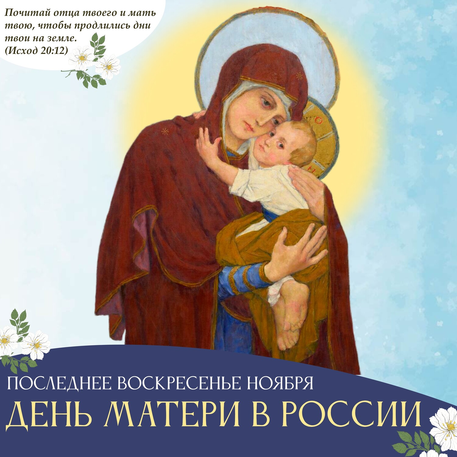 Сердечно поздравляю всех вас с высокоторжественным и светлым днем – Днем матери! Этот праздник, который мы отмечаем 30 ноября 2025 года, дает нам прекрасную возможность воздать должное великому служению материнства. Мать – это начало жизни, неиссякаемый источник любви, тепла и самоотверженности. В ее сердце находит приют наша радость и утешение в скорбях, ее молитвы, словно невидимая стена, ограждают нас на протяжении всего жизненного пути. Святитель Григорий Богослов, обращаясь к своей матери, святой Нонне, писал: «Ты молитвами и слезами привела ко Христу отца моего, и меня, с самого детства принесши Богу, соделала священником». Вот она, сила материнской веры и молитвы, способная привести ко спасению не только детей, но и целые семьи! В наши дни, когда основы семьи подвергаются стольким испытаниям, пример христианских матерей, их терпение, смирение и крепкая вера являются тем живым камнем, на котором созидается духовное благополучие народа и государства. Дорогие матери! Ваш ежедневный, подчас незаметный подвиг не остается без награды. Помните слова апостола: «Любовь долготерпит, милосердствует, любовь не завидует, любовь не превозносится, не гордится» (1 Кор. 13:4). В этом апостольском гимне любви мы видим и прекрасный образ материнского сердца. В этот праздничный день от всего сердца желаю вам, дорогие матушки, крепости душевных и телесных сил, неоскудевающей помощи Божией в ваших многотрудных заботах, радости о детях и внуках, а в семьях ваших – мира, согласия и взаимной любви. Да хранит вас Господь и Пресвятая Богородица под Своим благодатным Покровом! С любовью о Христе,