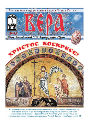 - Праздничный выпуск газеты открывает Пасхальное послание Патриарха Кирилла. - Рубрика «День за днём»: краткие новости из жизни православия. - В очерке «Один день с митрополитом» Елена Григорян рассказывает о совместной поездке по церквям Сыктывкарской епархии, в которой она по-новому узнаёт владыку. - «Не словом, а делом» (Маргарита Венцковская). Беседа со старожилом северной глубинки о прошлом, настоящем и будущем русской деревни и о том, что нужно, чтобы это будущее всё-таки наступило. - Очерк «На берегу Среднерусского моря» - разговор Владимира Григоряна с руководителем Вятского отделения Объединения православных учёных о жизни, об организации и о том, почему между наукой и религией нет пропасти. - «Пасха в Византии» (Владимир Григорян): о древних традициях потерянной страны – утраченных и тех, что сохранились до наших дней. - «Тот уголок земли...» - дневники редакционной экспедиции (продолжение, начало в №№ 981-992): встреча с отцом Фёдором Бородиным из Пушкинских Гор и знакомство с игуменом Евфросином (Боевым). - «Колокольчик» для детей и родителей (Елена Григорян). «На качелях» – история об ещё одной, но уже русской утерянной пасхальной традиции. Как в советское время поздравляли с Пасхой, вы узнаете в статье «Пасхальный привет из прошлого». Трогательный рассказ о девочке, которая больше всего любила Пасху. - В рубрике «Чтение» опубликованы отрывки из книги Святогорского игумена Василия о его путешествии на Святую Землю. - В рубрике «Юмор» - шутки на тему православия. - Просьба о помощи к читателям газеты «Вера». - «Цветник духовный»: притча о детской мудрости - как «втереть в себя» любовь. НА ФОТО: - Обложка газеты «ВЕРА» № 993 (7). - Владыка Филипп благословляет прихожан. Фото пресс-службы Сыктывкарской епархии. - Грандиозный Храм Софии в Константинополе (Стамбуле) ныне превращён в мечеть... Фото И.Иванова