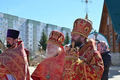 Его Высокопреосвященству сослужили: настоятель храма, благочинный Сыктывкарского Эжвинского церковного округа протоиерей Владимир Дунайчик, штатные клирики прихода и приглашенное городское духовенство. Диаконский чин возглавил диакон Артемий Юркин. Богослужебные песнопения прозвучали в исполнении хора прихода. На сугубой ектенье были вознесены особые прошения и молитва о Святой Руси. После отпуста Литургии состоялся Пасхальный крестный ход вокруг храма с чтением Евангелия и окроплением верующих святой водой. В завершении богослужения владыка Филипп обратился к богомольцам с проповедью на тему праздника Пасхи. Всем пришедшим в этот день на службу были вручены на молитвенную память иконки святой блаженной матроны Московской. Больше фотографий — https://vk.com/album-26012117_309590999