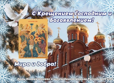 С праздником Крещения Господня! Пусть благодать Божия укрепляет вас во всех делах! Для вас подготовлены поздравительные картинки, созданные Юлией Захаровой специально к этому празднику. Присылайте в комментариях сообщества Сыктывкарской епархии фотографии храмов нашей епархии, и, возможно, следующий набор картинок будет с вашим храмом!