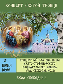 8 июня в 18:00 в концертном зале звонницы Свято-Стефановского кафедрального собора (ул. Свободы 60/2) пройдет концерт, посвященный Святой Троице.