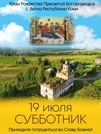 Дорогие братья и сёстры! Сыктывкарская епархия приглашает всех неравнодушных принять участие в субботнике, который состоится 19 июля в древнем селе Вотча. Сбор участников — в 8:30 Основная задача — уборка мусора внутри храма Рождества Пресвятой Богородицы, чтобы эта святыня вновь обрела благолепие и стала символом живой веры и нашей общей памяти.