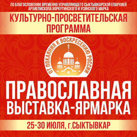 25 июля (пятница) 10.00 Начало работы выставки 10.30 Выступление автора и исполнителя христианской и патриотической песни иерея Валерия Логачева, клирика Орской епархии 11.00 Торжественное открытие выставки молебном «На начало благого дела» Место проведения: центральная площадка 12.00 до 17.00 – Индивидуальные беседы с дежурным священником выставки Место проведения: центральная площадка 13.00 Творческое выступление иеромонаха Александра (Митрофанова) Место проведения: центральная площадка 14.00 Кинозал. Фильмы о роли Русской Православной Церкви в приближении Победы Место проведения: центральная площадка 15.00 Акафист Место проведения: центральная площадка 16.00 Лекция иеромонаха Александра (Митрофанова) «Евангелие- это интересно» Место проведения: центральная площадка 17.00 Благодарственный молебен Место проведения: центральная площадка 19.00 Завершение первого дня работы выставки 26 июля (суббота) 10.00 Начало работы выставки 10.30 Выступление автора и исполнителя христианской и патриотической песни иерея Валерия Логачева, клирика Орской епархии Место проведения: центральная площадка 11.00 Молебен «На начало благого дела» Место проведения: центральная площадка 12.00 до 17.00 – Индивидуальные беседы с дежурным священником выставки. Место проведения: центральная площадка 13.00 Выступление автора и исполнителя христианской и патриотической песни иерея Валерия Логачева, клирика Орской епархии 14.00 Кинозал. Фильмы о роли Русской Православной Церкви в приближении Победы Место проведения: центральная площадка 15.00 Акафист Место проведения: центральная площадка 16.00 Лекция «Православие и интернет», спикер: иеромонах Александр (Митрофанов) Место проведения: центральная площадка 17.00 Благодарственный молебен Место проведения: центральная площадка 19.00 Завершение второго дня работы выставки. 27 июля (воскресенье) 10.00 Начало работы выставки 10.30 Выступление автора и исполнителя христианской и патриотической песни иерея Валерия Логачева, клирика Орской епархии Место проведения: центральная площадка 11.00 Молебен «На начало благого дела» Место проведения: центральная площадка 12.00 до 17.00 Индивидуальные беседы с дежурным священником выставки Место проведения: центральная площадка 12.00 Выступление автора и исполнителя христианской и патриотической песни иерея Валерия Логачева, клирика Орской епархии 14.00 Кинозал. Фильмы о роли Русской Православной Церкви в приближении Победы Место проведения: центральная площадка 15.00 Акафист Место проведения: центральная площадка 16.00 Выступление автора и исполнителя христианской и патриотической песни иерея Валерия Логачева, клирика Орской епархии 17.00 Благодарственный молебен Место проведения: центральная площадка 19.00 Завершение третьего дня работы выставки. 28 июля (понедельник) 10.00 Начало работы выставки 10.30 Выступление автора и исполнителя христианской и патриотической песни иерея Валерия Логачева, клирика Орской епархии Место проведения: центральная площадка 11.00 Молебен «На начало благого дела». Место проведения: центральная площадка 11.30 Выступление Архиерейского хора Свято-Стефановского кафедрального собора (регент Злобина Инесса Владимировна) Место проведения: центральная площадка 12.00 до 17.00 – Индивидуальные беседы с дежурным священником выставки Место проведения: центральная площадка 12.00 мастер- класс по макрам