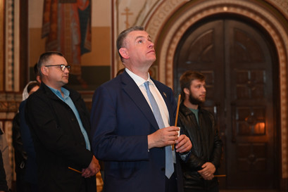 8 сентября 2025 года Свято-Стефановский кафедральный собор Сыктывкара посетил председатель партии ЛДПР, глава фракции ЛДПР в Государственной Думе, председатель Комитета Государственной Думы по международным делам, председатель Правления Международного общественного фонда «Российский фонд мира» Леонид Эдуардович Слуцкий. Вечером в понедельник у главного входа в собор высокого гостя и его сопровождающих встретили Глава Сыктывкарской митрополии, Высокопреосвященнейший митрополит Сыктывкарский и Коми-Зырянский Филипп и ключарь собора иерей Сергий Власов. Гостям провели обзорную экскурсию по главному храму Республики Коми. Леонид Эдуардович с молитвой приложился к чудотворному образу Спаса Нерукотворного и другим святыням собора. Владыка Филипп прочитал молитву Господу и Спасителю нашему Иисусу Христу, после чего гости поставили свечи. В ходе состоявшейся беседы стороны обсудили текущее состояние собора и пришли к единодушному мнению о необходимости проведения косметического ремонта внутренних помещений. Была выражена уверенность, что с помощью Божией и милосердием добрых людей эти благие начинания обязательно осуществятся. В знак благодарности за тёплый приём Леонид Эдуардович преподнёс в дар Высокопреосвященнейшему владыке образ преподобного Сергия Радонежского и икону Царственных страстотерпцев. В свою очередь, владыка Филипп преподнёс высокому гостю памятное изображение кафедрального Свято-Стефановского собора и икону святителя Стефана Пермского. Владыка сердечно поблагодарил за драгоценные дары, особо отметив, что для него лично икона святой семьи Царственных страстотерпцев имеет глубокое духовное значение, так как он родился в день, когда Церковь воспоминает их память. Больше фотографий — https://vk.com/album-26012117_307306609