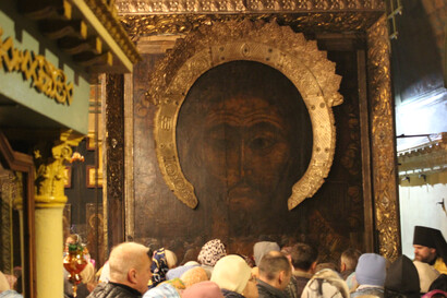В этот день в знаменитом Воскресенском соборе города Тутаева прошло традиционное осеннее перенесение чтимого образа Всемилостивого Спаса из летнего храма в зимний. Божественную литургию и чин перенесения чудотворной иконы совершили соборно: Митрополит Сыктывкарский и Коми-Зырянский Филипп; Архиепископ Салехардский и Ново-Уренгойский Николай; Епископ Рыбинский и Романово-Борисоглебский Вениамин. Этот торжественный чин совершается в Тутаеве дважды в год. Осенью, в воскресенье перед праздником Покрова Пресвятой Богородицы, образ переносят в отапливаемый зимний храм, а весной, в воскресенье перед празднованием перенесения мощей святителя Николая Чудотворца из Мир Ликийских в Бари, святыню с молитвой возвращают в летний храм. Визит Высокопреосвященнейшего митрополита Филиппа стал выражением братского общения и молитвенного единства между Сыктывкарской и Рыбинской епархиями. Кратко об образе. Историческая справка: Чудотворная икона «Всемилостивого Спаса» в Тутаеве Икона находится в Воскресенском соборе города Тутаева Ярославской области. Она называется «Нерукотворный Образ Всемилостивого Спаса». По преданию, икона принадлежит кисти преподобного Дионисия Глушицкого, уроженца Вологодской губернии, жившего в XV веке. Почерневший вид иконы объясняется тем, что в старину для сохранности их покрывали олифой, которая со временем темнеет. Со всех икон собора этот слой удалили, а с этой, по неизвестной причине, — нет. За многие века пребывания в храме этот образ Всемилостивого Спаса неоднократно прославлялся чудесами. По этой причине с него неоднократно делали списки. Один из них, созданный в Романове — важном иконописном центре Поволжья, — ныне находится в Музее имени Андрея Рублёва. Существует благочестивая традиция: с любовью и молитвой проползать на коленях под чудотворной иконой Спасителя. В киоте под иконой устроено специальное окошко. Ежедневно под образом проползают многие люди, получая по вере исцеление от болезней, разрешение проблем и утешение от душевной боли. О Воскресенском соборе Воскресенский собор является жемчужиной не только Тутаева, но и всего русского зодчества, уникальным памятником ярославской архитектуры XVII века. Построенный на правом берегу Волги, собор занимает господствующее положение и как бы парит над городом, будучи видимым со всех сторон. В небольшом приволжском городке смогли «всем миром» построить храм, который своими огромными размерами, изысканностью и богатством убранства может соперничать с крупнейшими сооружениями Москвы и Ярославля. Во время двух посещений Тутаева в Воскресенском соборе вел богослужение Патриарх Алексий II, который назвал собор «величественным и благолепным». Собор состоит из двух храмов — нижнего (теплого, зимнего) и верхнего (холодного, летнего). Нижняя церковь в честь Смоленской иконы Божией Матери была построена несколько раньше. Верхний Воскресенский храм и окружающая его с трех сторон галерея — спустя несколько лет. Высота нижней церкви — 5 метров, верхней — 13,5 метров (до купола — 24 метра).