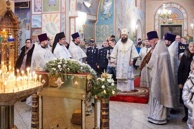 Его Высокопреосвященству сослужили настоятель храма и благочинный Ухтинского церковного округа иерей Роман Ситник, клирики храма и приглашённое городское духовенство. За богослужением молились глава муниципального округа «Ухта» Республики Коми, руководитель администрации Марина Николаевна Метелёва и генеральный директор ООО «Газпром трансгаз Ухта» Андрей Дмитриевич Баранов, а также многочисленные прихожане и гости. По окончании службы в знак благословения и в память о совместной молитве всем пришедшим были подарены иконки Пресвятой Богородицы. Это молитвенное начало положило старт уже третьему по счёту большому празднику, организованному ООО «Газпром трансгаз Ухта» для детей. В этот раз его посетили более 150 ребят, включая воспитанников воскресных школ г. Ухты и г. Вуктыла, детского дома № 2 г. Ухты, а также детей из многодетных и малообеспеченных семей города. Обращаясь к собравшимся после богослужения, владыка митрополит отметил: «В эти святые дни мы призваны открыть свои сердца свету Рождественской звезды. Господь всегда ждёт тех, кто чист сердцем и готов к восприятию благодати. Отрадно видеть, что наше взаимодействие с ООО “Газпром трансгаз Ухта” позволяет проводить такие праздники для подрастающего поколения. Когда мы объединяем усилия в делах милосердия, мир вокруг становится добрее и светлее. Пусть свет этого праздника всегда пребывает с вами, укрепляя в вере и любви к ближним». После проповеди Владыка лично вручил детям рождественские подарки — сладости и наборы для творчества, предоставленные компанией. По сложившейся традиции праздник продолжился в Центре творчества им. Г.А. Карчевского. Ребята увидели спектакль «Золушка» в исполнении артистов Академического театра драмы им. В. Савина (г. Сыктывкар), а также приняли участие в игровой программе с Дедом Морозом, Снегурочкой и сказочными героями. Генеральный директор ООО «Газпром трансгаз Ухта» Андрей Дмитриевич Баранов подчеркнул: «Для коллектива нашей компании этот благотворительный праздник стал доброй и очень важной традицией. Рождество — это время надежды и милосердия. Мы хотим, чтобы каждый ребёнок, независимо от жизненных обстоятельств, чувствовал поддержку и тепло. Мы верим, что, соединяя вечные евангельские истины с высоким искусством театра, мы помогаем детям вырасти не только грамотными и талантливыми, но и по-настоящему мудрыми, милосердными людьми». Отметим, что ежегодно в преддверии Нового года и Рождества Христова волонтёры из числа сотрудников ООО «Газпром трансгаз Ухта» во всех регионах производственной деятельности проводят благотворительные акции «Праздник — детям» и «Тепло наших сердец». Они поздравляют детей и одиноких пожилых людей, нуждающихся в социальной поддержке, а также в Ухте дарят «Добрые подарки» семьям участников специальной военной операции.