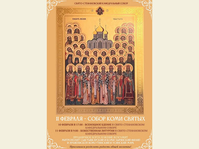 9:00 – Божественная литургия архиерейским чином в Свято-Стефановском кафедральном соборе. Облачения красные. Ваше присутствие, дорогие отцы и настоятельницы, как пастырей и молитвенников земли Коми, является важной и неотъемлемой частью праздника. Мы также с любовью ожидаем в эти дни всех наших прихожан и верных чад Церкви, дабы едиными устами и единым сердцем вознести благодарение Господу и почтить память наших небесных заступников. Просим благочинных довести эту информацию до сведения подведомственного духовенства. Дата и место: 10–11 февраля 2026 года, г. Сыктывкар, Свято-Стефановский кафедральный собор. С любовью о Христе и в ожидании совместной молитвы, Епархиальное управление | |