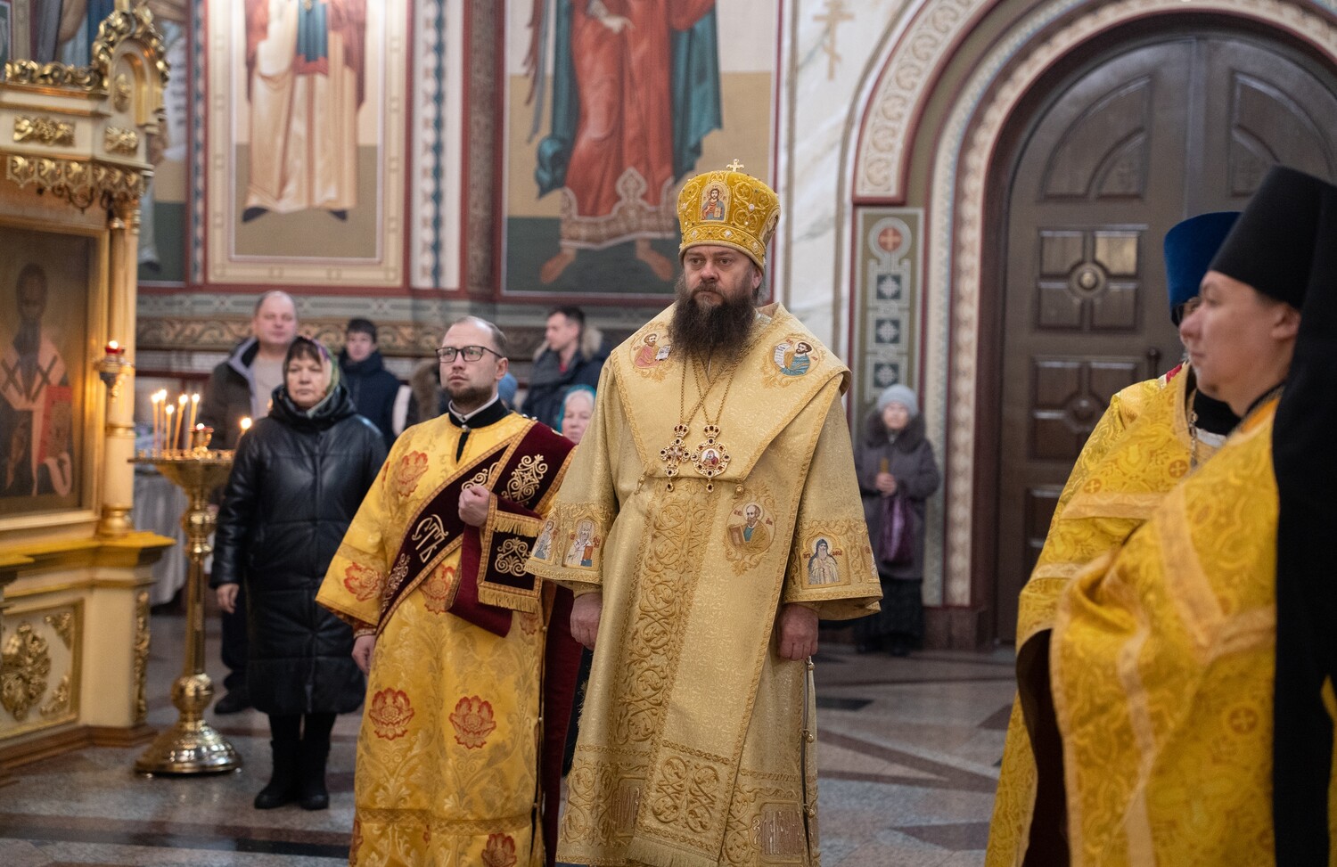 Его Высокопреосвященству сослужили ключарь кафедрального собора иерей Сергий Власов и штатное духовенство собора. Диаконский чин возглавил диакон Артемий Юркин. Богослужебные песнопения исполнил архиерейский смешанный хор под управлением регента Иннесы Злобиной. По сугубой ектении была вознесена молитва о Святой Руси. По завершении богослужения владыка Филипп обратился к молящимся с архипастырским словом. Краткое житие святой великомученицы Анастасии Узорешительницы Святая Анастасия († ок. 304 г.) пострадала при императоре Диоклетиане. Родившись в знатной римской семье, она тайно воспитывалась в христианской вере. После замужества за язычником она, храня чистоту, посещала тюрьмы, где помогала заключённым христианам: ухаживала за больными, перевязывала раны, утешала и поддерживала их. За это она получила имя Узорешительница — разрешающая от уз страданий, отчаяния и скорби. После смерти мужа она раздала своё имущество нуждающимся и всю себя посвятила служению узникам, странствуя по разным городам. Была схвачена, претерпела истязания и пытки, но осталась непоколебима в вере. После долгих мучений святая Анастасия была казнена в городе Сирмиуме через растяжение между четырьмя столбами над огнём. Её честные мощи почитаются верующими, а часть из них (честная глава и стопа) хранится в одноимённом монастыре близ греческого города Салоники.