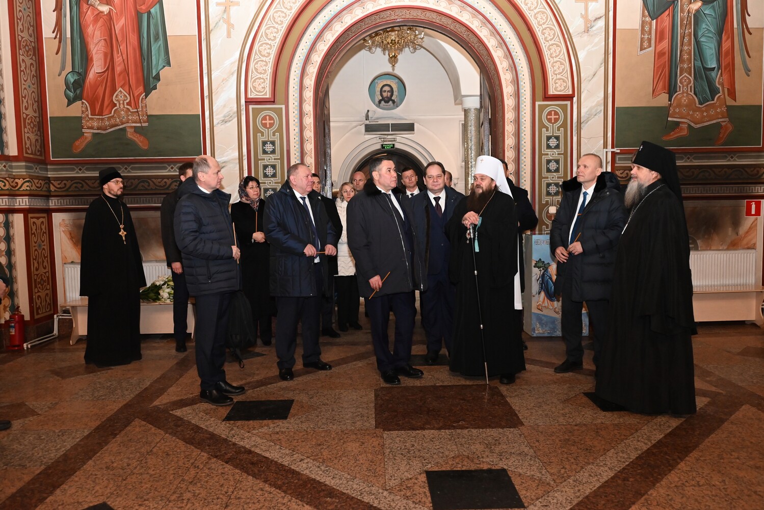 Несмотря на плотный график, делегация во главе с Игорем Руденей нашла время для посещения главного храма республики, что подчеркивает глубокое уважение федеральной и региональной власти к духовным и историческим ценностям народа Коми. Высоких гостей у собора встретил митрополит Сыктывкарский и Коми-Зырянский Филипп. Владыка лично провел для делегации ознакомительную экскурсию, в ходе которой рассказал об истории создания собора и его небесном покровителе — святителе Стефане Пермском, просветителе зырян. В сопровождении иерарха гости осмотрели убранство храма, помолились, поставили свечи о здравии и благоговейно приложились к величайшей святыне собора — частице мощей святителя Стефана. В мероприятии также принял участие архиепископ Воркутинский и Усинский Марк. Это визит стал значимым событием, свидетельствующим о конструктивном диалоге и единстве целей между Церковью и государством в деле сохранения культурного кода и духовно-нравственного воспитания общества. В знак памяти о посещении главной святыни епархии митрополит Филипп преподнесел Игорю Михайловичу Рудене икону святителя Стефана Пермского и художественное полотно с изображением Кафедрального собора. Со своей стороны, за теплый прием и гостеприимство, полномочный представитель Президента вручил в дар владыке Филиппу Казанскую икону Пресвятой Богородицы.