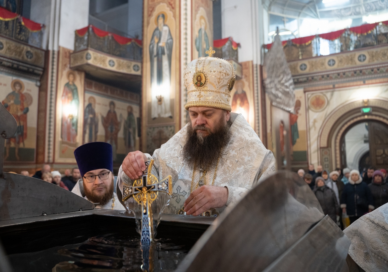 Его Высокопреосвященству сослужил ключарь кафедрального собора иерей Сергей Власов с соборным духовенством храма. Дьяконский чин возглавил протодиакон Андрей Маков. Богослужебные песнопения исполнил объединенный хор кафедрального собора под управлением Инессы Злобиной. По сугубой ектении были вознесены молитвы о Святой Руси. По окончании литургии глава Сыктывкарской митрополии совершил Великое освящение воды. Затем Его Высокопреосвященство поздравил собравшихся с двунадесятым праздником, причастников – с принятием Святых Христовых Таин и обратился к присутствующим со архипастырским словом. После этого состоялся крестный ход к городской реке Сысола для освящения вод для последующего крещенского купания. Больше фотографий — https://vk.com/album-26012117_308703839