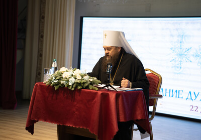 В собрании приняли участие наместники и игумении монастырей, благочинные церковных округов, руководители епархиальных отделов, настоятели и клирики храмов, а также сотрудники епархиального управления. Открывая собрание, митрополит Филипп обратился к присутствующим с докладом. Доклад Высокопреосвященнейшего Филиппа, митрополита Сыктывкарского и Коми-Зырянского, на годовом Епархиальном собрании в г. Сыктывкаре 22 декабря 2025 года. «Возлюбленные о Господе отцы, монашествующие, братия и сестры! Сердечно приветствую всех вас, собравшихся сегодня на годовое Епархиальное собрание, в рамках которого мы подведем итоги жизни и деятельности Сыктывкарской епархии за 2025 год. Численный состав духовенства: Штатных священников — 110 человек, диаконов — 19 человек, игумений — 3. Перешедших из других епархий — 4 человека: иерей Сергий Власов, диакон Самуил Сычев (ныне иеромонах Самуил (Сычев)), иеромонах Сергий (Виноградский), иерей Антоний Нечепоренко. Основные события епархиальной жизни за 2025 год: В начале собрания была возглашена «Вечная память» почившему архиепископу Питириму (правящему архиерею в 1995–2025 гг.); также было помянуто имя почившего игумена Игнатия (Бакаева). 24 июля 2025 года решением Священного Синода Русской Православной Церкви в пределах Республики Коми была образована Сыктывкарская митрополия. 18–19 ноября 2025 года я принял участие в работе XXVII Всемирного русского народного собора в Москве. Сыктывкарской епархией передана в дар Воркутинской епархии квартира по адресу: Республика Коми, г. Воркута, ул. Гагарина, д. 12А, кв. 90. В Сыктывкарскую епархию был принесен ковчег с мощами святителя Тихона, Патриарха Московского и всея Руси. Проведены праздничные мероприятия, посвященные 30-летию Сыктывкарской епархии. Под председательством митрополита Сыктывкарского и Коми-Зырянского Филиппа и архиепископа Воркутинского и Усинского Марка проведено два Архиерейских совета. На них был обсужден ряд текущих вопросов жизни епархий и запланировано два ежегодных совместных богослужения: в день празднования Собора Коми святых (11 февраля) и второе — по дополнительному согласованию. В декабре совершен дружественный визит в Воркутинскую епархию с совершением общего богослужения и посещением социально значимых объектов. За отчетный период мною совершены посещения всех детских домов и домов-интернатов, а также крупных больничных центров на территории г. Сыктывкара. Решается вопрос об идентификации мощей святителя Стефана Пермского и перенесении его честных останков в Сыктывкарскую епархию. Ведутся переговоры и переписка по вопросу обретения и идентификации мощей членов Священной дружины, захороненных на Тентюковском кладбище. Было получено и оглашено заключение по найденным на территории Усть-Вымского монастыря костным останкам: установлено, что они не имеют отношения к древней истории обители, вопрос закрыт. В мае 2026 года планируется празднование 630-летия со дня преставления святителя Стефана Пермского. 21 декабря освящен храм в п. Синдор, построенный при активном участии предприятия «Газпром». Обращение к духовенству: Прошу все духовенство обратить особое внимание и сделать упор на социальное служение: посещение школ и больниц, окормление семей военнослужащих, помощь участникам СВО, детям воскресных школ и детям-сиротам. О такой ра