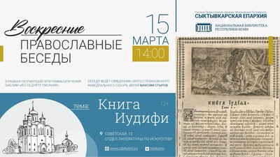 В рамках Патриаршей программы по изучению Библии «Исследуйте Писания» разберём Книгу Иудифи. Ждём вас в отделе литературы по искусству Национальной библиотеки Республики Коми. Подробнее на сайте библиотеки: vk.cc/cVinbj 12+