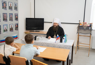 В теплой и дружеской обстановке архипастырь пообщался с детьми, ответил на их многочисленные вопросы и дал напутственные советы. Владыка поделился с ребятами воспоминаниями о своем детстве и рассказал о служении у алтаря Господня, которое он несет на протяжении почти 30 лет: сначала в сане диакона и священника, а последние 14 лет — как архипастырь. В ходе беседы митрополит Филипп напомнил юным прихожанам о важности жизни по заповедям Божиим, необходимости творить добрые дела, почитать родителей и уважать старших. Архипастырь призвал детей радоваться всему, что дает Господь. «Люби то, что рядом, а не мечтай о том, что далеко. Надо вести себя так, чтобы тебя любили. Ни на кого не обижайся: сильный человек – это необидчивый человек, все обиды от гордыни, а это самый страшный грех», — сказал, в частности, Владыка. Воспитанников интересовали самые разные темы: как поступать, если близкие не разрешают ходить в храм; как выстраивать общение с людьми других вероисповеданий; будут ли возводиться новые храмы на территории республики; как бороться с компьютерной зависимостью. Отвечая на вопрос о достижении целей при недостатке сил, митрополит Филипп подчеркнул: «Господь смотрит не на силы, а на желание, стремление – и дает силы для воплощения в жизнь планов». В завершение встречи участники затронули тему выбора будущей профессии. Владыка выразил уверенность, что воспитанники Воскресной школы будут рядом с Русской Православной Церковью, принимая активное участие в литургической жизни, а возможно, посвятят свою дальнейшую жизнь служению. Полученные в школе знания, по словам Владыки, ребята смогут применять в делах милосердия, социальном служении, благотворительности, а мальчики — в дальнейшем духовном образовании и служении Матери-Церкви. При этом архипастырь отметил, что, какую бы профессию ни выбрали ребята, главное — никогда не забывать Бога. Угодить Ему можно в любом деле, если нести свое служение с упованием на Его волю, помня, что всё — от Него и к Нему. В самых разных профессиях есть верующие люди, которые своими трудами прославляют Господа. На встрече также присутствовал духовник Воскресной школы иерей Иоанн Баранов. Такие встречи с настоятелем имеют огромное значение для воспитанников Воскресной школы. Для детей, которые делают первые шаги в храме, возможность живого общения с архипастырем — это не только радостное событие, но и важный урок веры. Особенно ценно, что для ребят из Воскресной школы кафедрального собора есть возможность лично знать своего правящего архиерея как мудрого наставника и заботливого настоятеля, который всегда готов поддержать их добрым словом и советом. Важно, чтобы дети воспитывали в себе духовные начала. Это так же необходимо, как физическое или интеллектуальное развитие. Воскресная школа при кафедральном соборе помогает юным прихожанам обрести этот фундамент, на котором строится вся дальнейшая жизнь. По всем вопросам записи и обучения можно обращаться к директору школы Ольге Ильиничне Дёминой по телефону: +7 (904) 231-99-44.